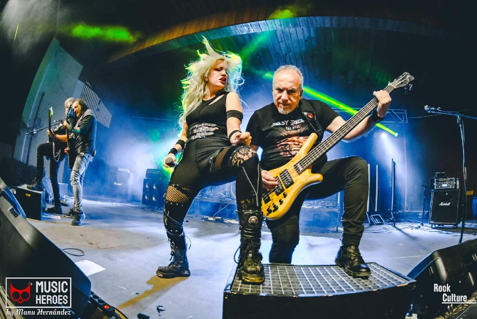 El sonido quizá estuvo un poco saturado de graves lo que pudo deslucir en algún momento la pericia de ambos guitarristas, principalmente su líder y fundadora Patri Grief, guitarra solista de la banda. Lo cual compensaron con actitud, como vengo diciendo en todo momento. Incluso se atrevieron con bailecitos y poses típicos del Heavy Metal clásico animando al público todo el tiempo mientras desgranaban temas de su primer y único álbum Madness & Heroes. Llegada la hora de las presentaciones mencionaron que faltaba un miembro, su teclista, que no pudo estar en el evento.