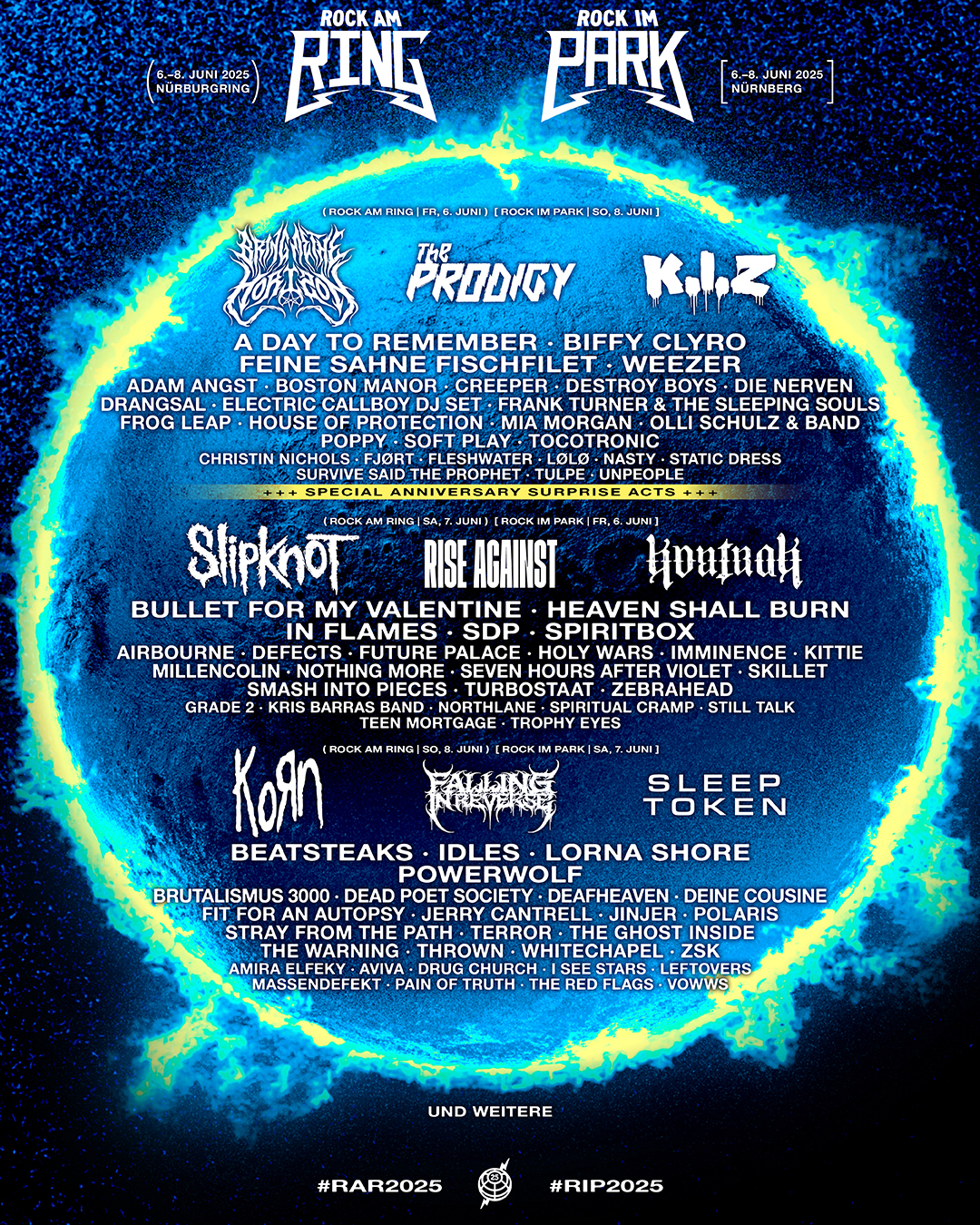 Además de KoRn, el cartel de Rock am Ring 2025 incluye a grandes nombres como Weezer, Bullet For My Valentine, Kontra K, The Prodigy, Rise Against y muchos más. Con más de 100 bandas confirmadas, este festival será una celebración épica del rock.