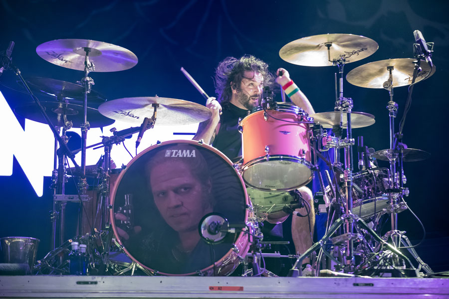 Con el recinto ya casi a reventar, le llegó el turno a Volbeat que tenía confeccionado un setlist repleto se grandes éxitos, pero que miraba más hacia el presente que hacia el pasado, escogiendo gran parte de los temas de sus últimos tres discos Servant Of The Mind, Rewind, Replay, Rebound y Seal The Deal & Let’s Boogie. El resultado fue un show a la americana en toda regla, con un juego de luces impresionante, efectos visuales, vídeos creados para cada canción mostrados en enormes pantallas led, confeti y decenas de balones hinchables que el público se dedicó ha hacer volar por toda la pista.