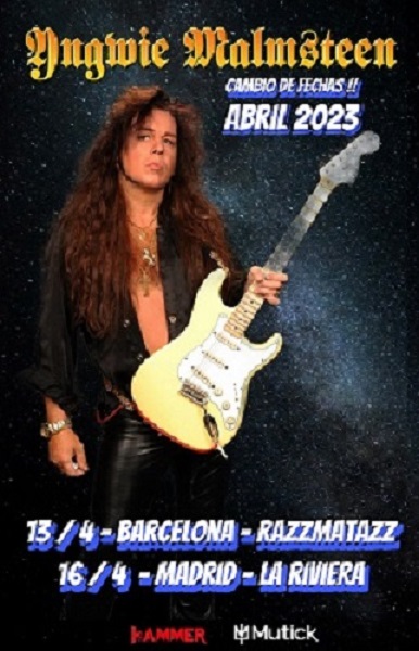 Finalmente el guitarrista sueco Yngwie Malmsteen pasará por nuestro país en abril del 2023, dos fechas son las previstas
